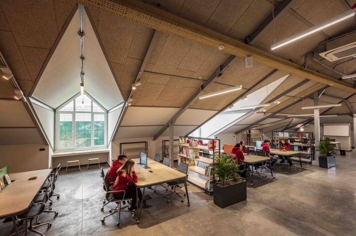 私立 Sezin 学校开放式屋顶空间是一个“超越课堂”的教学空间,具有空间混合功能,可促进会议、制作、学习和工作。该项目的关键问题是 ATOLYE 如何将一所先进的 K12 学校转变为 21 世纪技能的教学实验室。为此,项目借鉴富勒的 trimtab 理念,以轻量而有效的方式进行干预,选择了现有建筑原本休眠的空屋顶空间,在 15,000 平方米的范围内,面积约为 1,700 平方米。