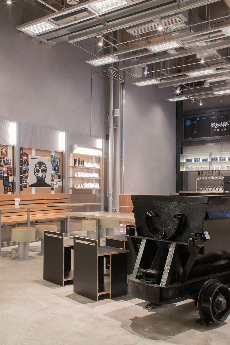 作为连接矿井与矿运列车的公共区域,空间以矿运列车站台作为概念展开,意图将街头与自由延伸至COZMINE线下空间。