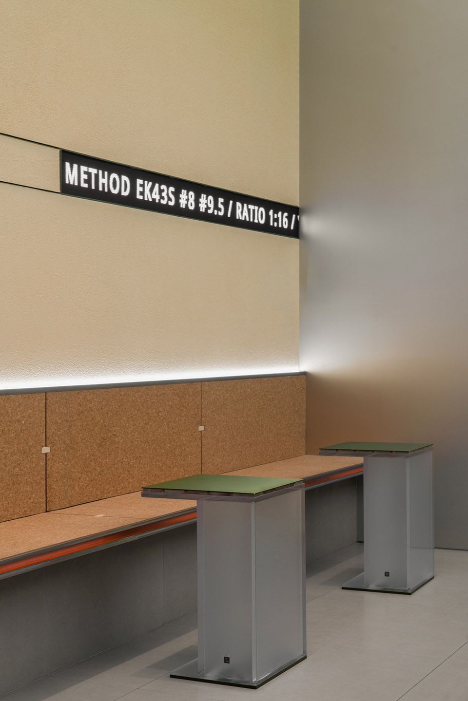 在道具上Das Lab更专注于材料最真实,最纯粹的表达。产品陈列架以一定尺度和模数化的组成,每个陈列架的底部嵌有品牌Grid的“G”的吸铁石,既能作为品牌和道具的细节出现,也能让展架排列时更加有序,可自由拆卸的模块来服务于产品的多样式展示和刺激消费者的成交量。