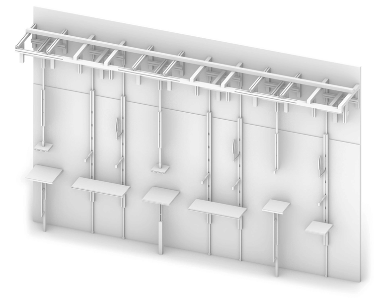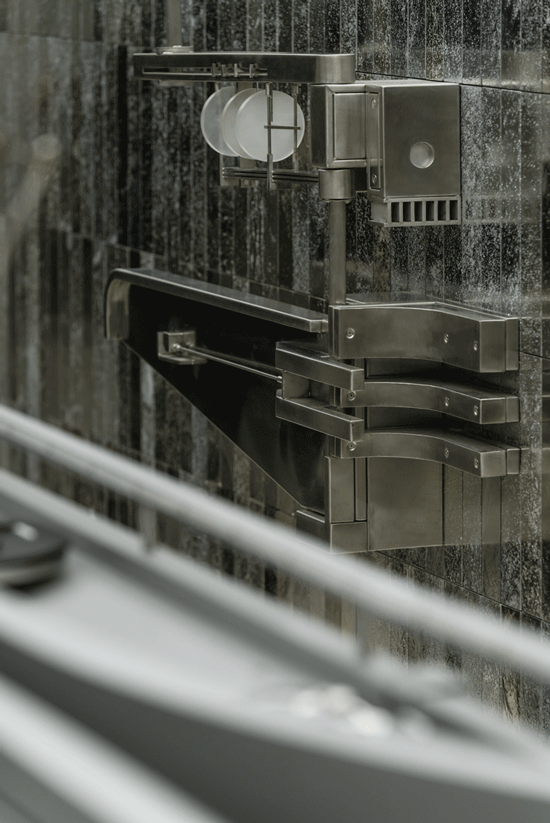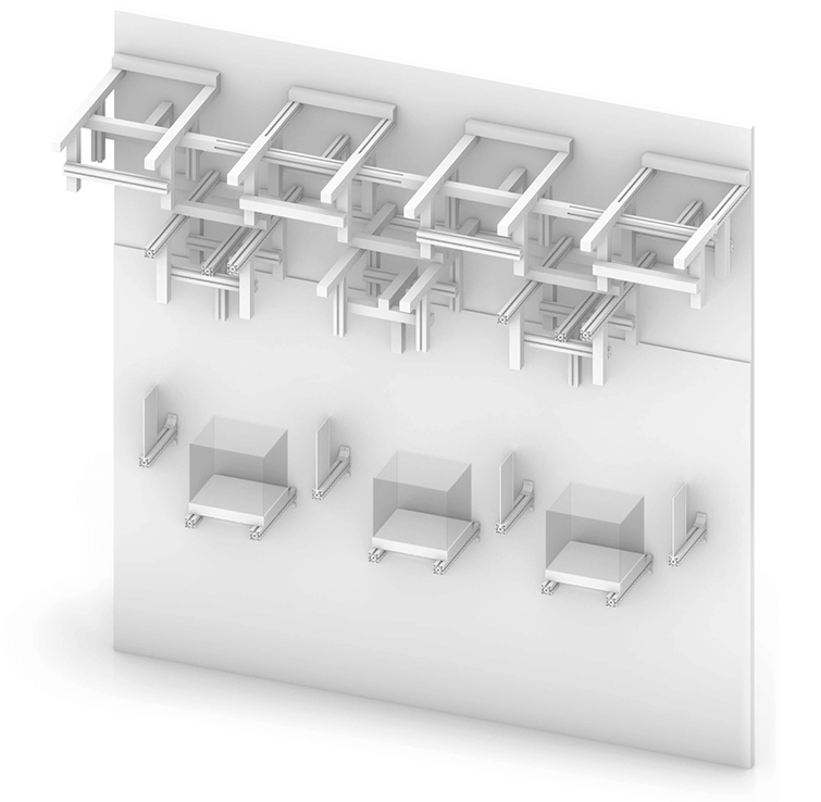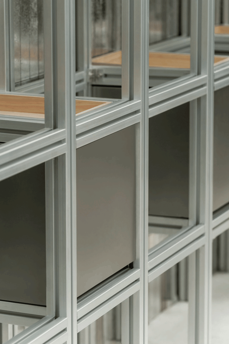 At the same time, on the premise of meeting the future long-term use of the space, each facade is combined with the existing product lines of the brand, through the combination of tray areas and cabinet areas, to meet the needs of different product display to the greatest extent.Under this “wall system”, each tray, cabinet and even spotlight can be flexibly moved, combined and disassembled according to the actual product size, display needs and visual focus. The combination of different modules satisfies various sales scenarios and locations in the future so that the overall display area is more flexible and creative in the form of modular, further expanding the space possibility.