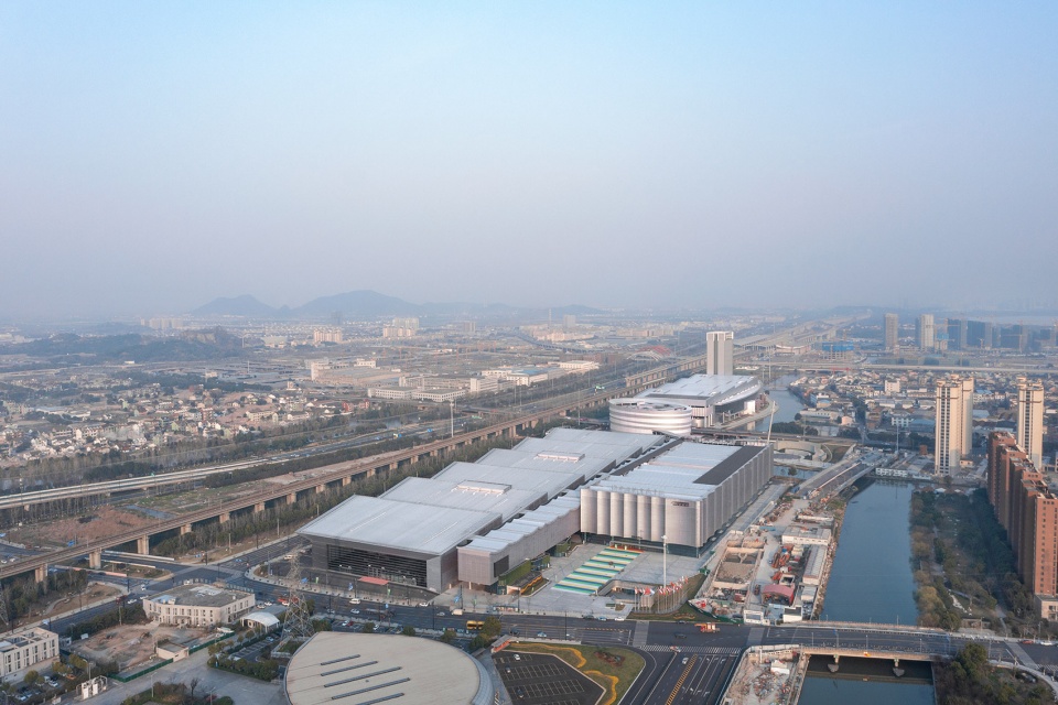 Shaoxing International Convention and Exhibition Center incorporates the local cultural characteristics of Shaoxing by integrating traditional symbols such as “water”, “textile”, “eaves”, and “lantern” into the overall architectural design, which makes the historical and cultural essence to take on a new look within the context of a new era, forming an organic urban convention and exhibition complex that comes seamlessly with the Jiangnan water villages.