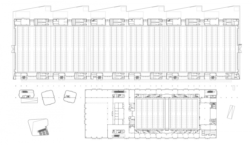 Shaoxing International Convention and Exhibition Center presents a total exhibition area of 100,000 square meters equipped with approximately 5,000 standard exhibition booths. The design features two supersized single-storey main exhibition halls arranged parallel to the north side of the central corridor with a floor-to-ceiling height of 15 meters, and can be flexibly divided into multiple unit exhibition halls to maximize the layout of single-storey exhibition areas. To meet the diverse needs of the urban convention and exhibition complex, a multifunctional exhibition hall and a double-storey exhibition hall that can accommodate exhibition halls, a 1,500-person auditorium, a multi-purpose hall, small and large conference rooms, and supporting rooms lie on the south side of the central corridor. Complemented with a login hall and concourse plaza to establish a clear “north for goods and south for people” zoning pattern, the layout utilizes the north side of the site to organize efficient circulation for both goods and people.