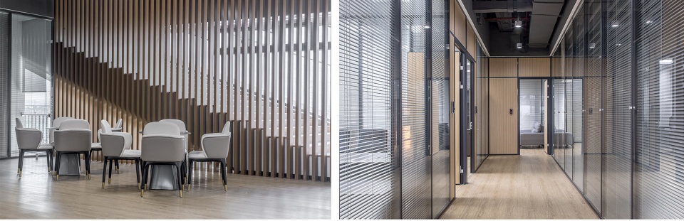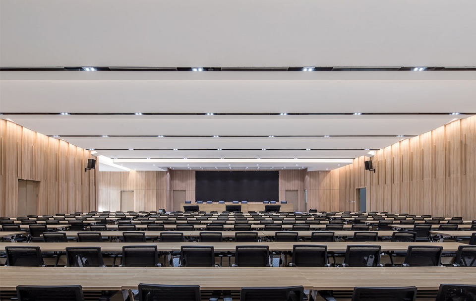 The interior design continues the concept and color palette of the architectural design. It adopts a light-colored neo-Chinese style. The entrance lobby is designed with a stable atmosphere; the restaurant space is relaxed and warm; the office area is modern and fashionable; the party and government meeting room is solemn and dignified.