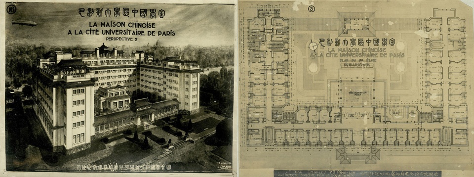 ▼由中国旅法建筑学生虞炳烈设计的中国学舍图纸,Maison Chinoise designed by Yu Ping-Lih© 东南大学建筑学院