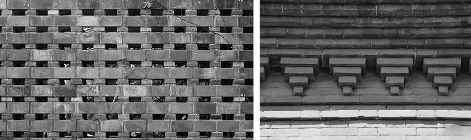 ▼用中国传统叠涩方式砌筑的檐口,Cantilevered brick eaves using traditional Chinese laying technique diese © 田方方