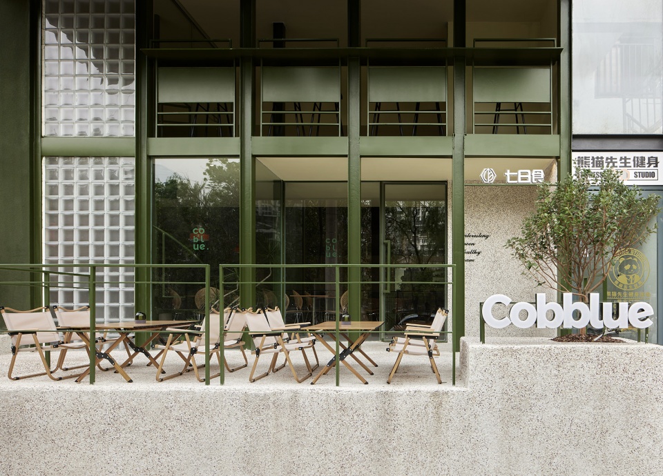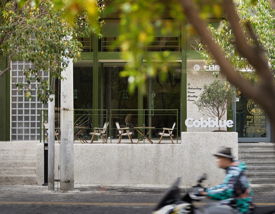 「Cobblue」Meiyin Lake store is the third collaboration between the Seven Time Light Food and the Way. Nowadays, the Seven Time Light Food has become a well-known light food and beverage brand in Luoyang. With people’s pursuit of a healthy diet, light food is still favoured by modern young consumers.This case is located in Jianye Mayin Lake, a street-facing store with a strong hustle and bustle atmosphere. It integrates community culture and combines nature and space, creating a light food restaurant and an aesthetic space to convey a healthy lifestyle.