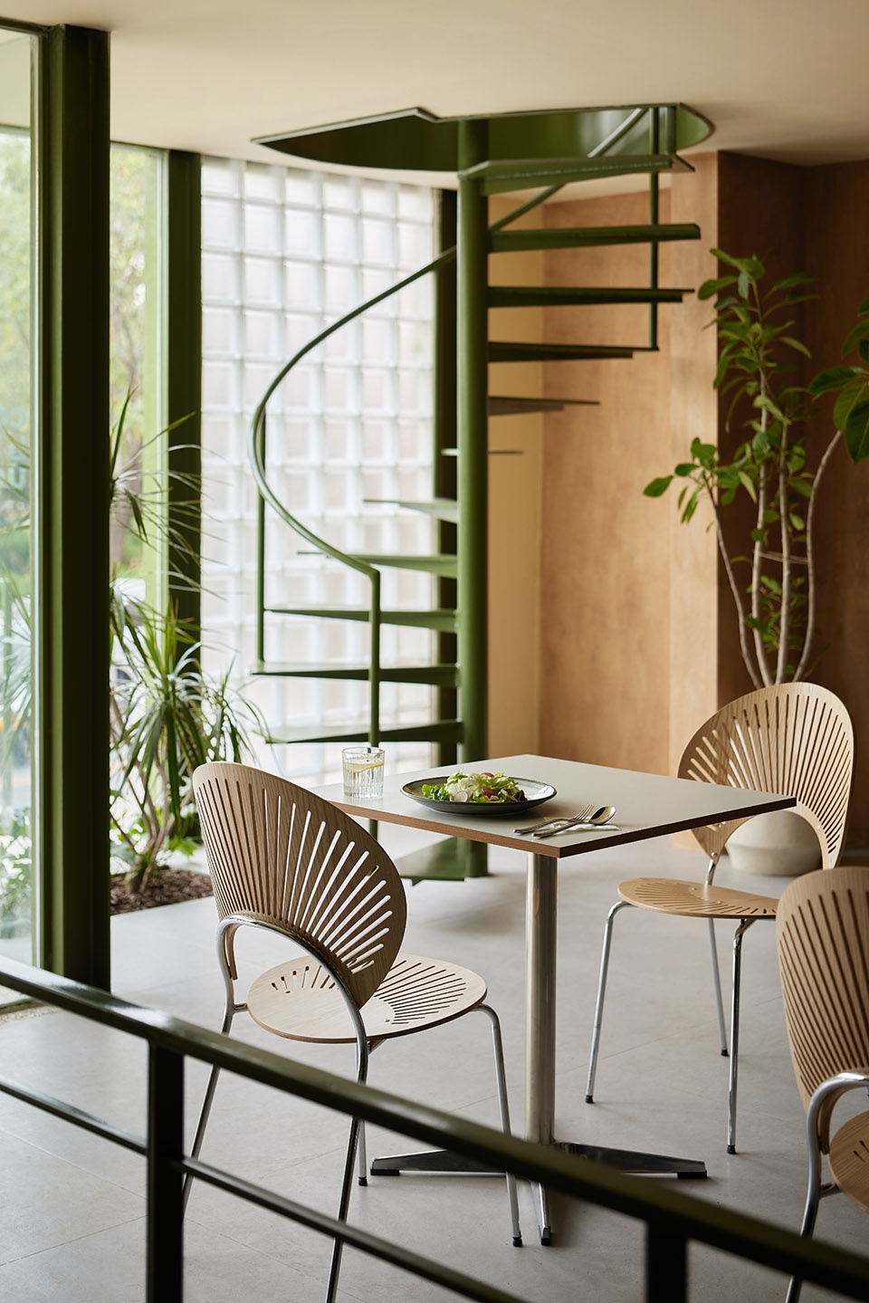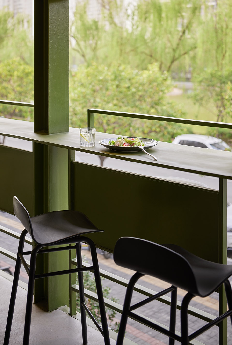 二层刻意留出户外露台空间,更好的让室内外相结合,城市的街景一览无余,绿意盎然相映成趣。一顿简餐一杯果汁,沉浸在浪漫的brunch,宁谧舒服的小角落。