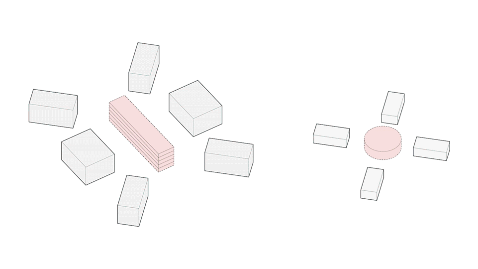 ▼抽象提取枢纽建筑的空间原型,Abstract extraction of the spatial prototype of the hub building© line+
