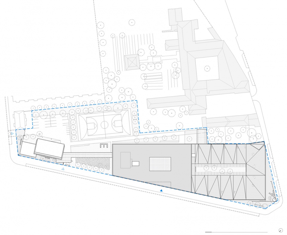The new School of Arts of Valladolid is adjacent to the convent of Las Carmelitas Descalzas. According to historical plans, the plot used to be part of the convent’s orchards, a condition which has characterised the project from the beginning. Towards the city, the buildings shows itself as an architecture of walls; towards the inside, an architecture of patios. The project strives to be respectful of its historical context. However, it houses a space for creativity, youth and dreams. The essence of the project is the materialization of this duality.