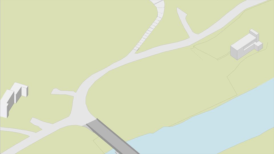 东林镇位于四川盆地常见的平原浅丘地貌,一条不宽的东林河穿越镇域,串起了场镇和若干村落,河上的白果桥是三村一镇的交界处,建筑选址就位于白果桥头一块长方形的地块。观察场镇的空间形态,由于河丘地理与沿河主干道的影响,场镇呈线性发展,围绕一条主街沿河展开,因此居民的主要生活也大多分布在主街两侧以及沿街形成的支巷之间。文化中心作为场镇公共空间的延续,我们希望建筑的空间体验可以与原生形成的聚落形态有所关联,在建筑中可以延续镇民所熟悉的“街道感”,为当地人的交流创造更加亲切的环境。