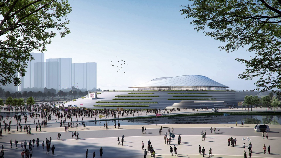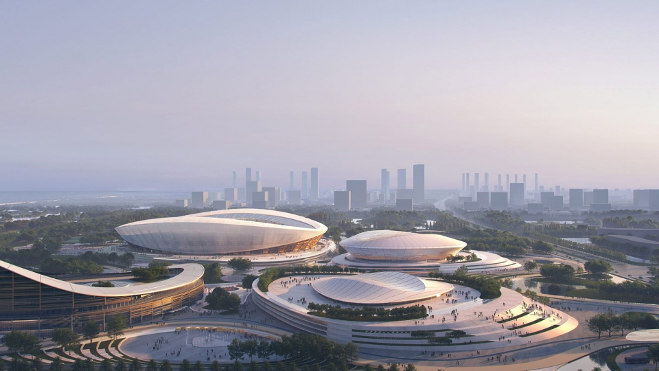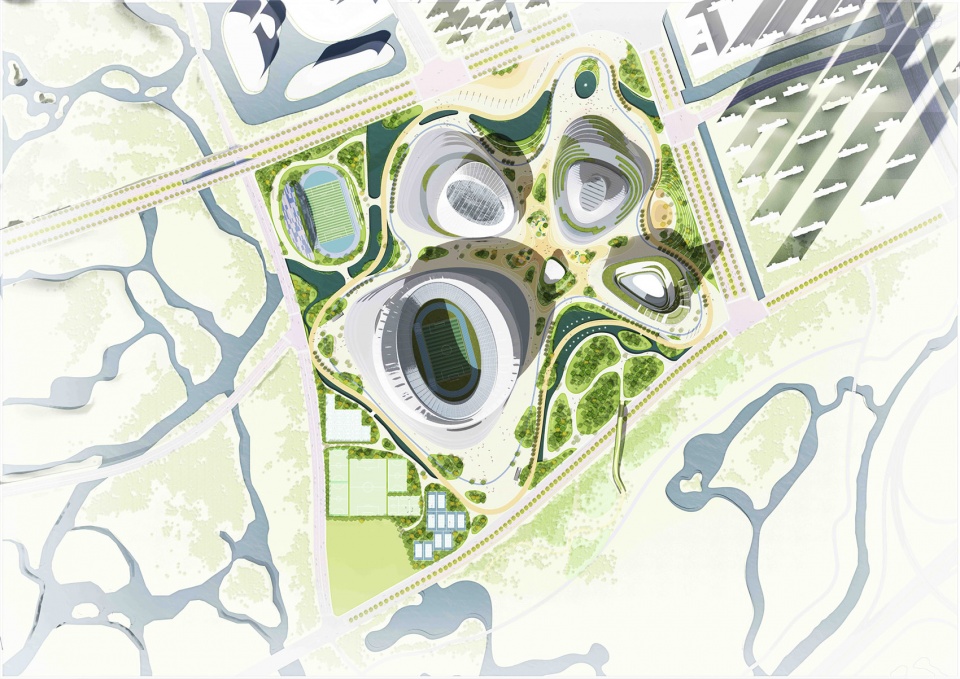 In an international competition for the Wuxi Olympic Sports Center, the architects von Gerkan, Marg and Partners (gmp) have won first prize. Plans include a stadium for 60,000 spectators, a multi-purpose arena with a capacity of 18,000, and a competition pool with 2,000 spectator seats, as well as a fitness center, a hotel, an apartment building for the competitors, and commercial facilities – all embedded in a landscape park of about 56 hectares. The sports center is not only to be used for international and national sports events, but will also provide optimal training conditions for local athletes. Likewise, visitors and residents from neighboring residential quarters will benefit from the complex’s various leisure and sports facilities.