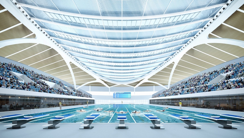 体育场馆的构造灵感来自于湖泊和湿地的形态和有机结构。主要结构元素转化成一个精细的轻质系统,唤起对叶片、翅膀和帆船的联想。gmp与结构工程顾问sbp携手合作,为体育场馆设计了高性能、资源节约型但又能应对极端天气事件的钢结构。