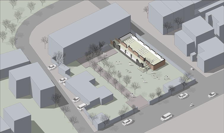We placed the school right under the neem tree as a tribute symbolizing the rich history. The extension block is a simple typical floor plan with three classrooms on the top and three on the bottom except for the interior walls. The ground floor is temporarily left open to double as a prayer hall, adding two partitions can give three more classrooms in the future.
