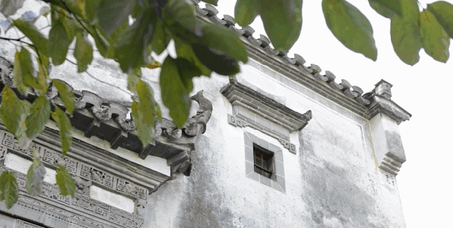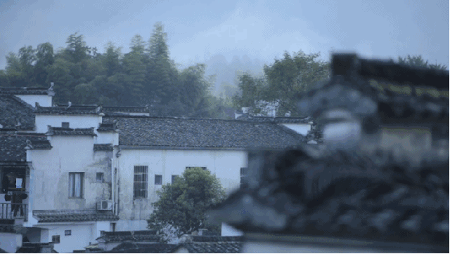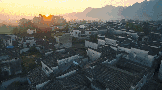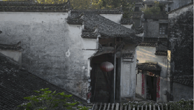 白墙灰瓦的徽州老宅散落山水的怀抱里,