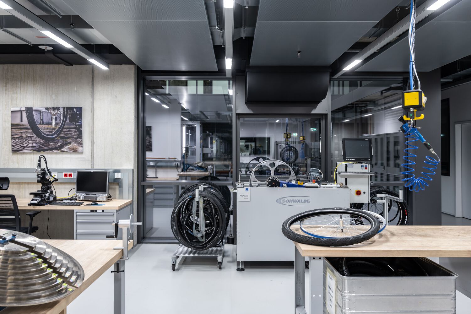 Schwalbe Hybrid Building 位于德国 Reichshof。Schwalbe 总部室内建筑工程占地约 2,200 平方米。该建设是在大流行期间实现的,从构思到竣工花了三年时间。Schwalbe – 一家领先的自行车轮胎制造商,其成功归功于毫不妥协的质量、持续创新和新技术以及推动更具环保意识的生产。