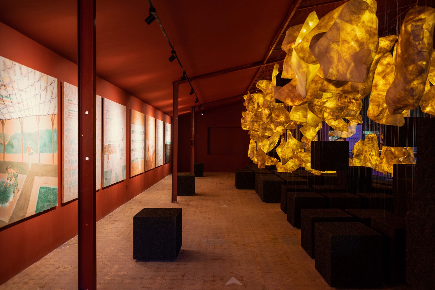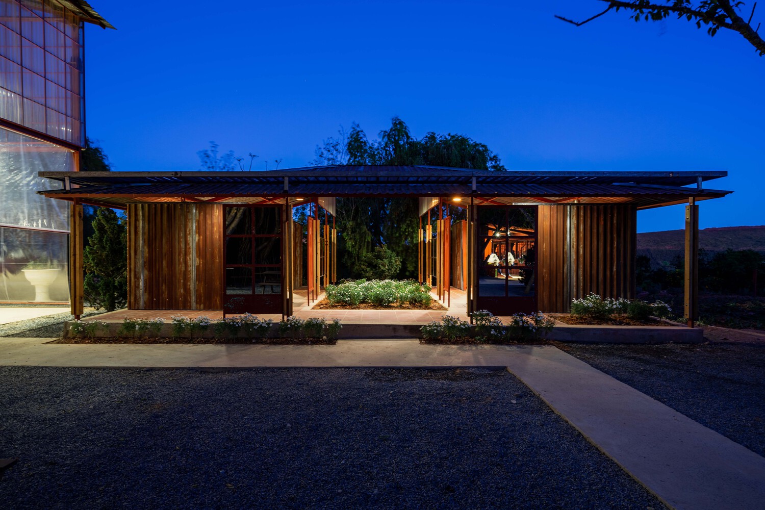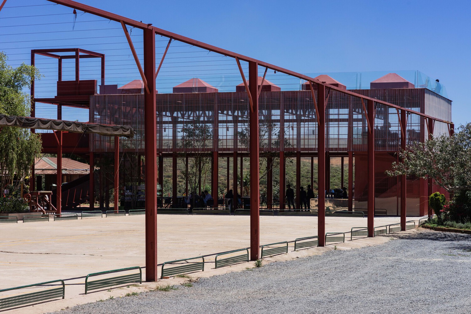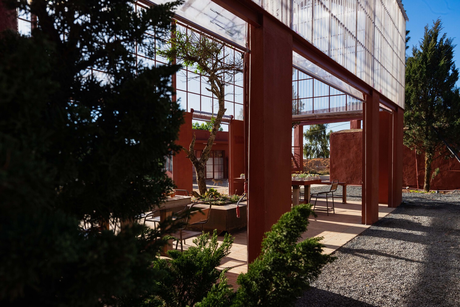 使用的材料非常简单,大多是翻新的钢材、聚碳酸酯板、当地的砖和现场的水泥土混合物。甚至艺术品也是用茶叶制成的,并通过将泥土与丙烯酸混合来绘制。建筑物的外部涂有新的防锈漆,旨在使其从邻居中脱颖而出。此外,这种颜色将成为未来 3D 绘图项目的巨大画布。
