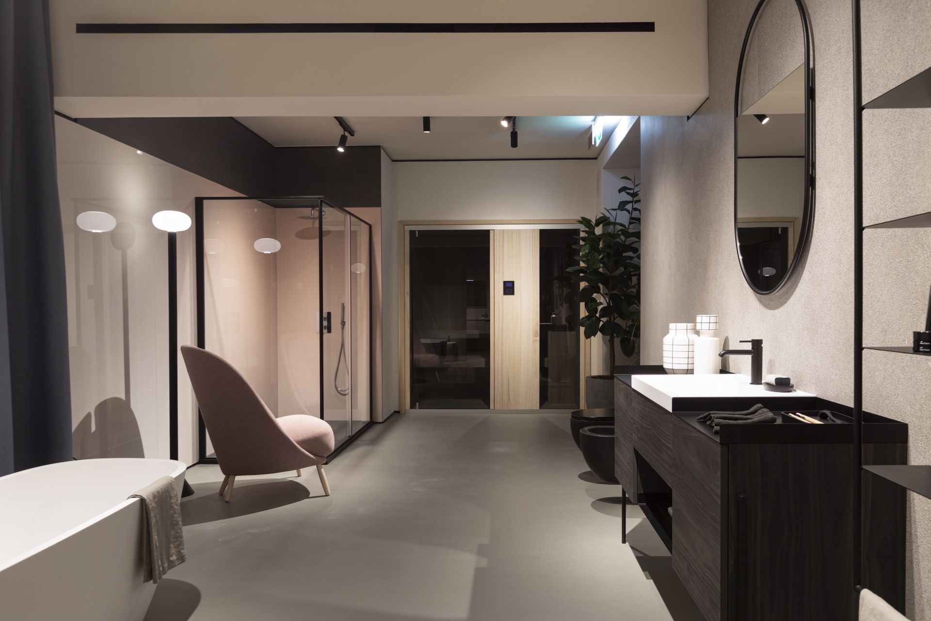 巨大的展厅设有面向街道的店面,面积超过 900 平方米,分为两层,展示了各公司提供的饰面、材料、产品和系统。