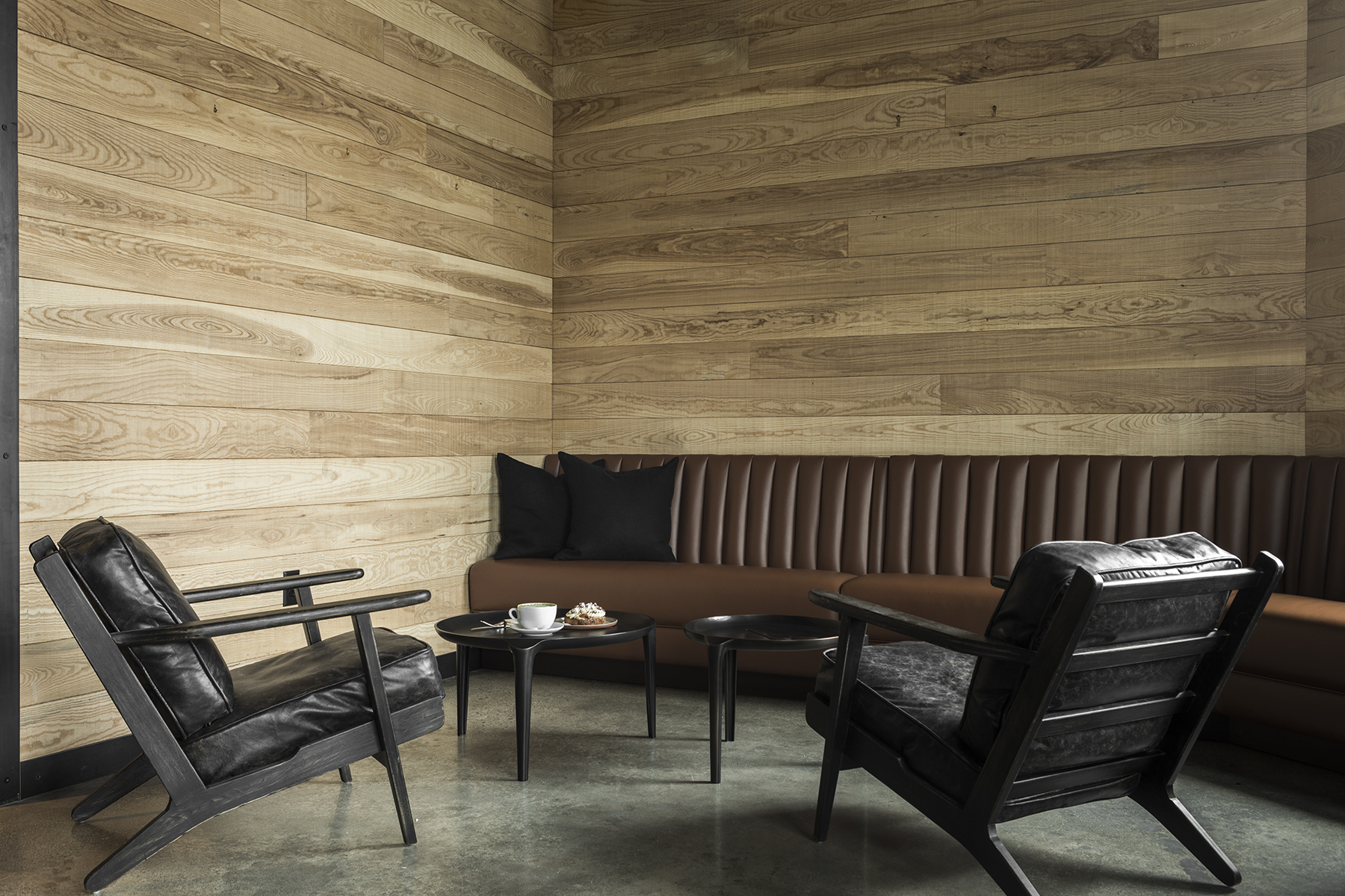 Coffeebar 是一家位于硅谷风险投资中心的现代咖啡馆和咖啡店。该设计重新构想了曾经的 3,378 平方英尺的商业建筑(以前是美甲沙龙和食品市场),将其改造成一个精心策划的现代目的地。钢材、柏木和玻璃等简单的材料调色板营造出现代氛围,同时又耐用。外部木质百叶窗漂浮在超大门窗前,以柔化刺眼的日光。室内设计模仿了意大利咖啡吧的风格,配有水磨石台面和墙壁。自行车链吊灯和用金属链窗帘隔开的壁龛向当地的自行车文化致敬。一张活边胡桃木公用桌子固定了这个空间。