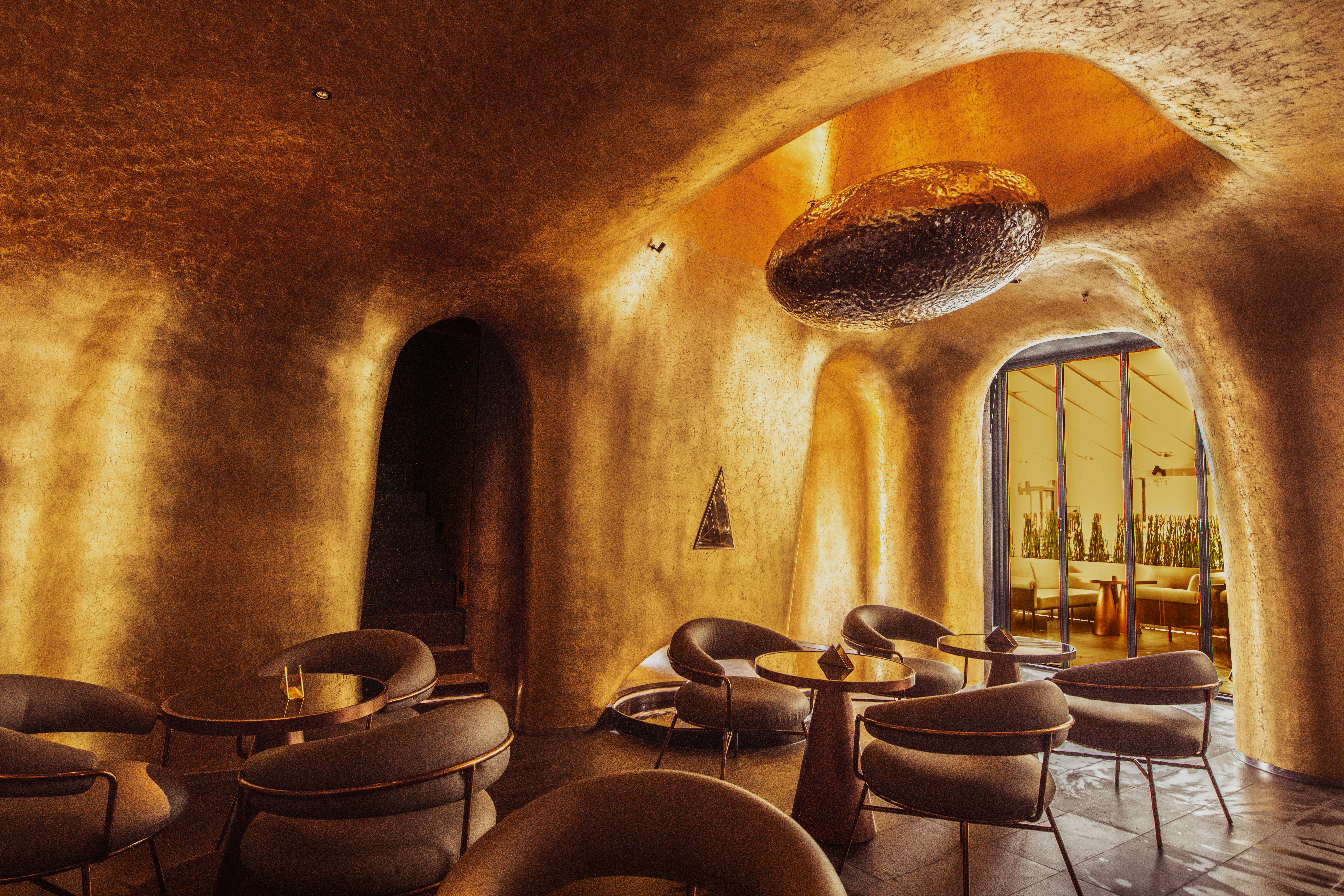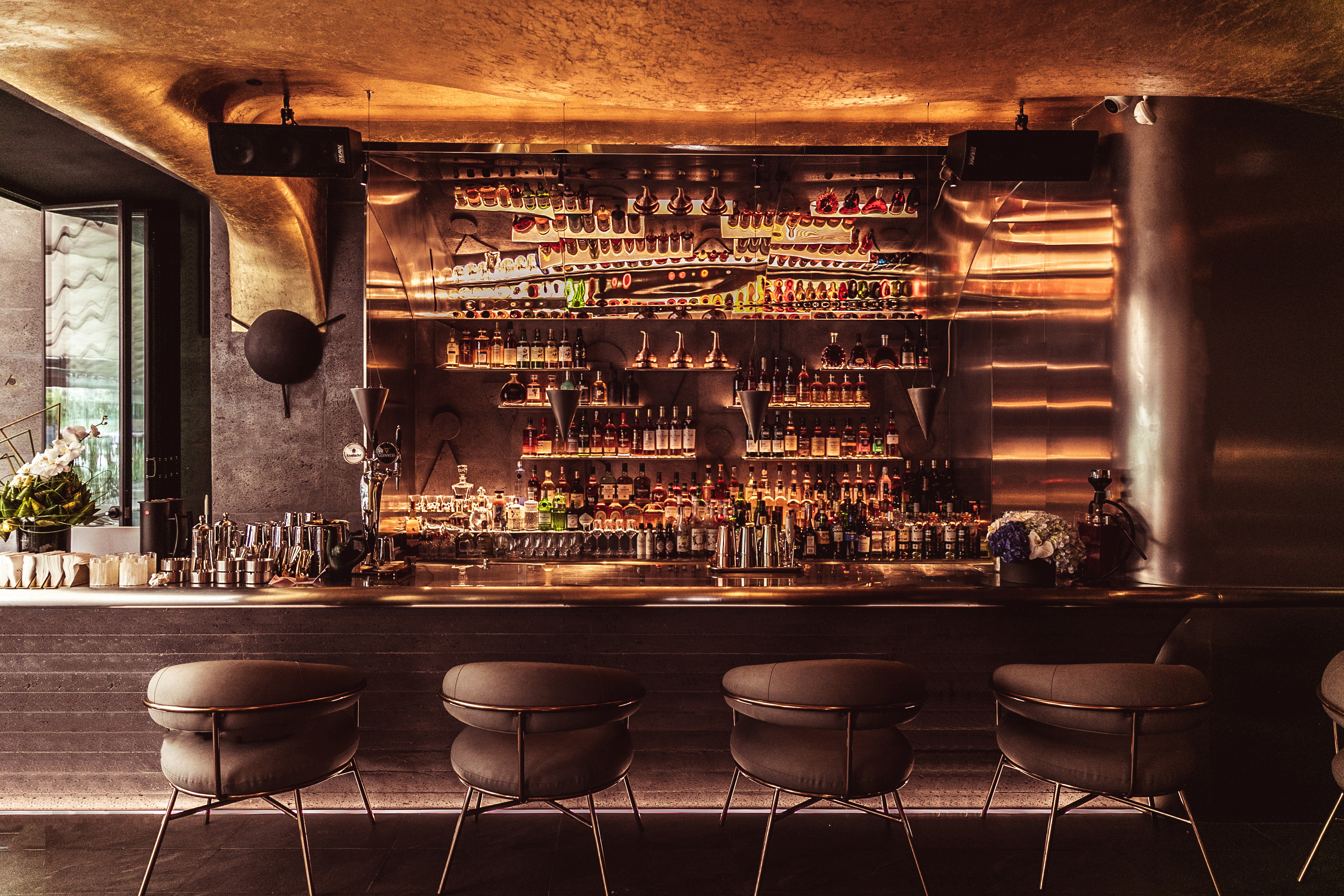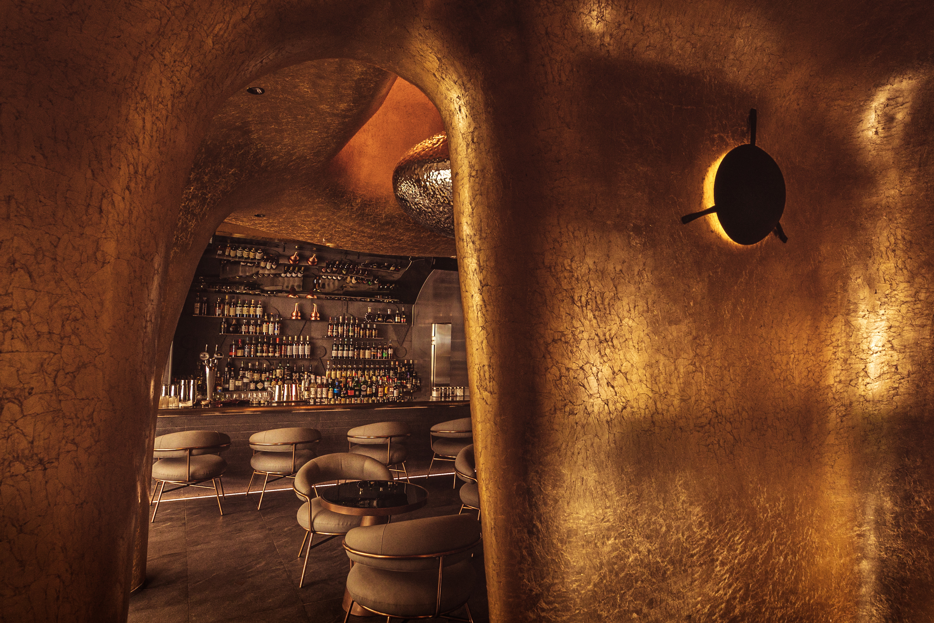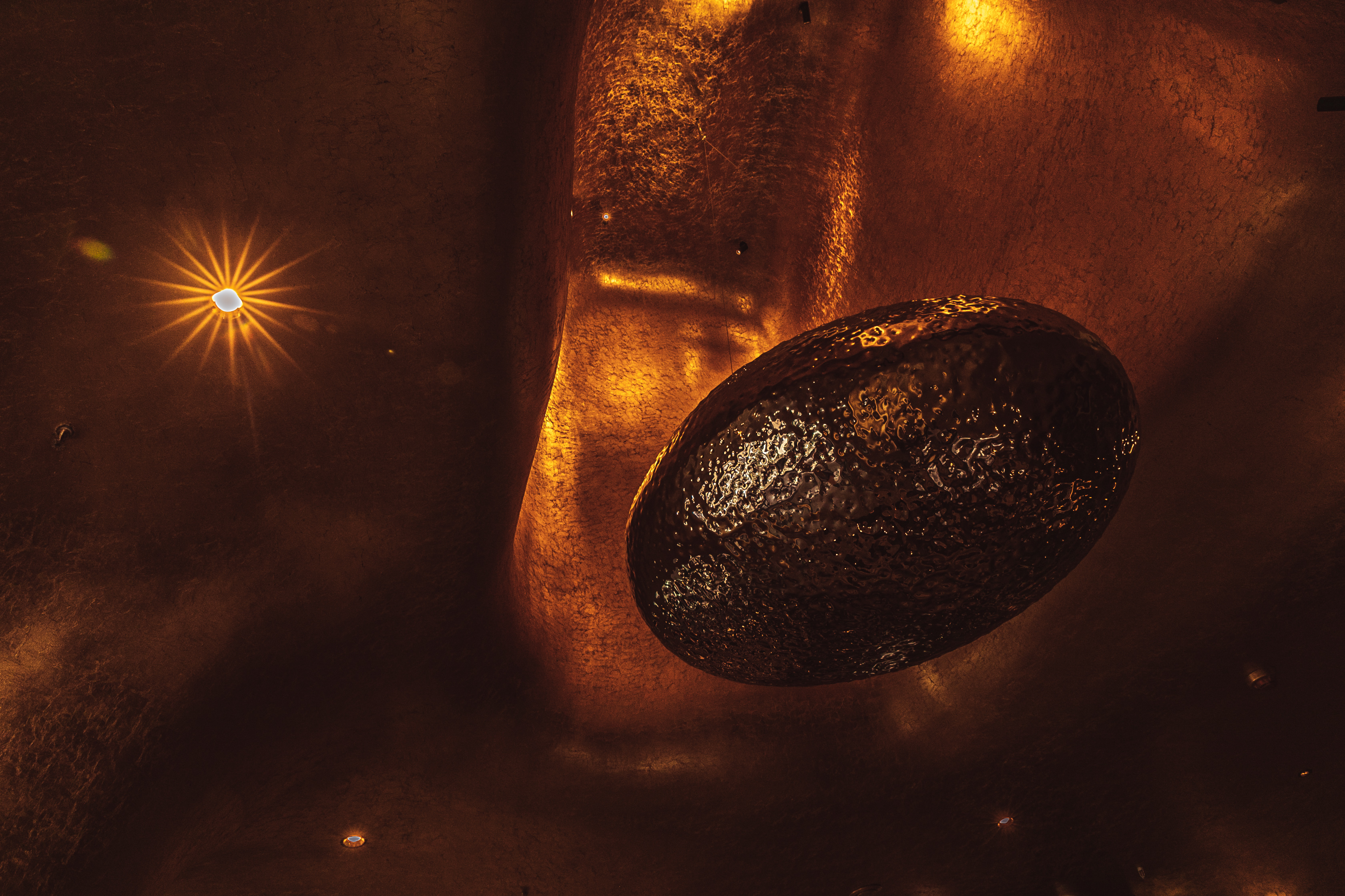 设计理念源自威士忌蒸馏器(COFFEY),在时间的流逝中通过蒸馏来分离物质。整个空间被视为一个蒸馏器,球形装置漂浮在容器内。它像一个冰球,一个水滴,在视觉上突破了传统空间的沉闷体验;忽视装饰,注重空间艺术。