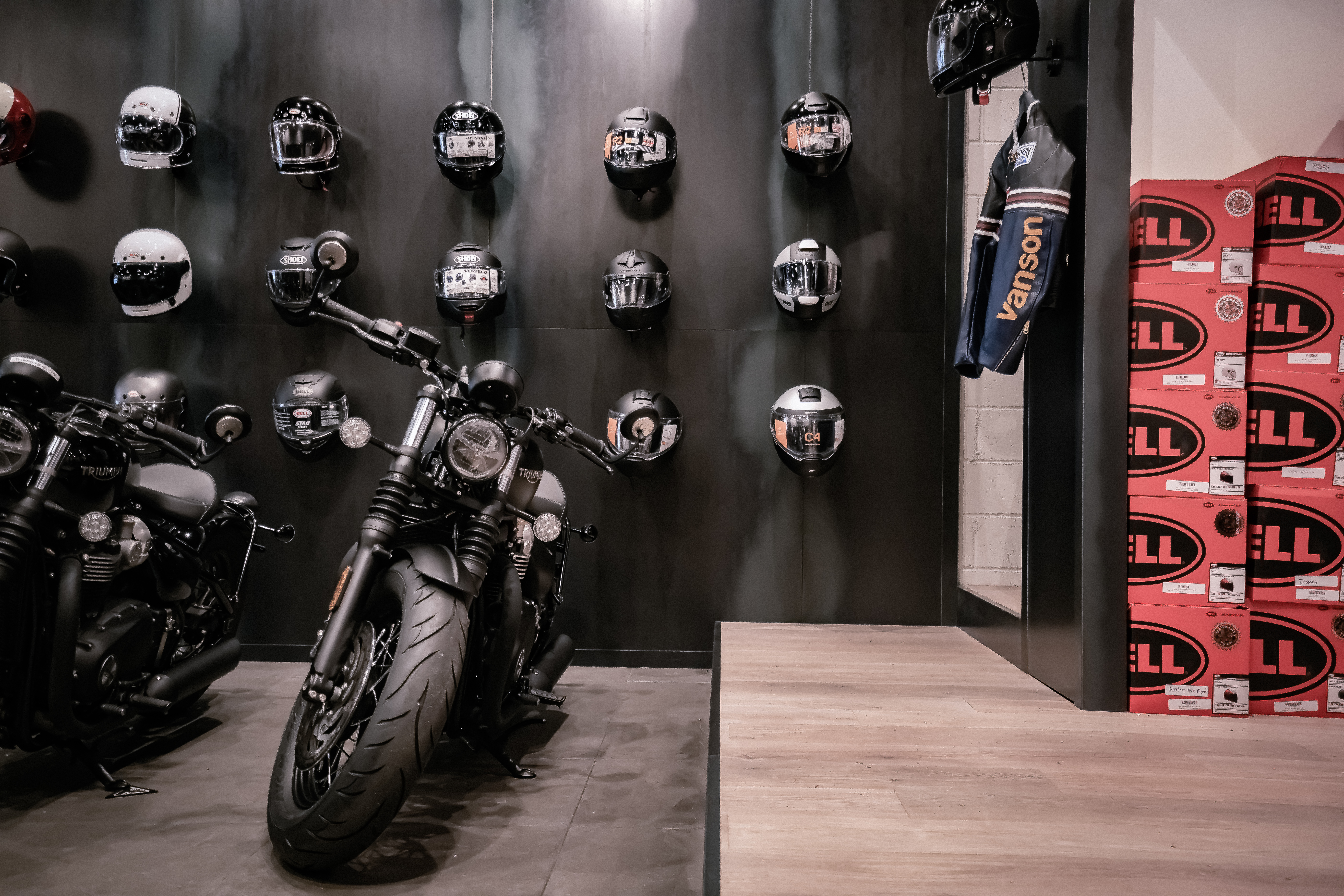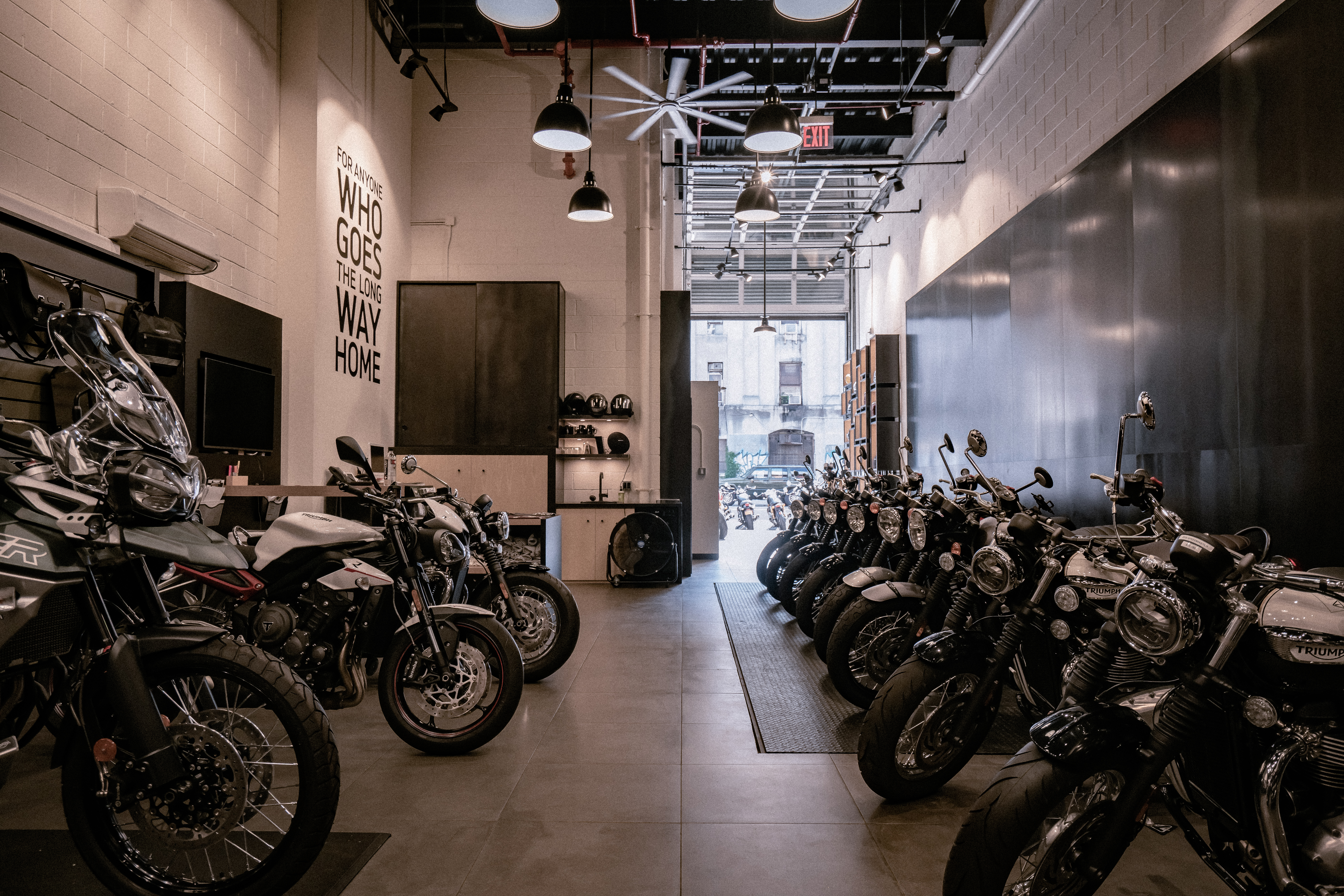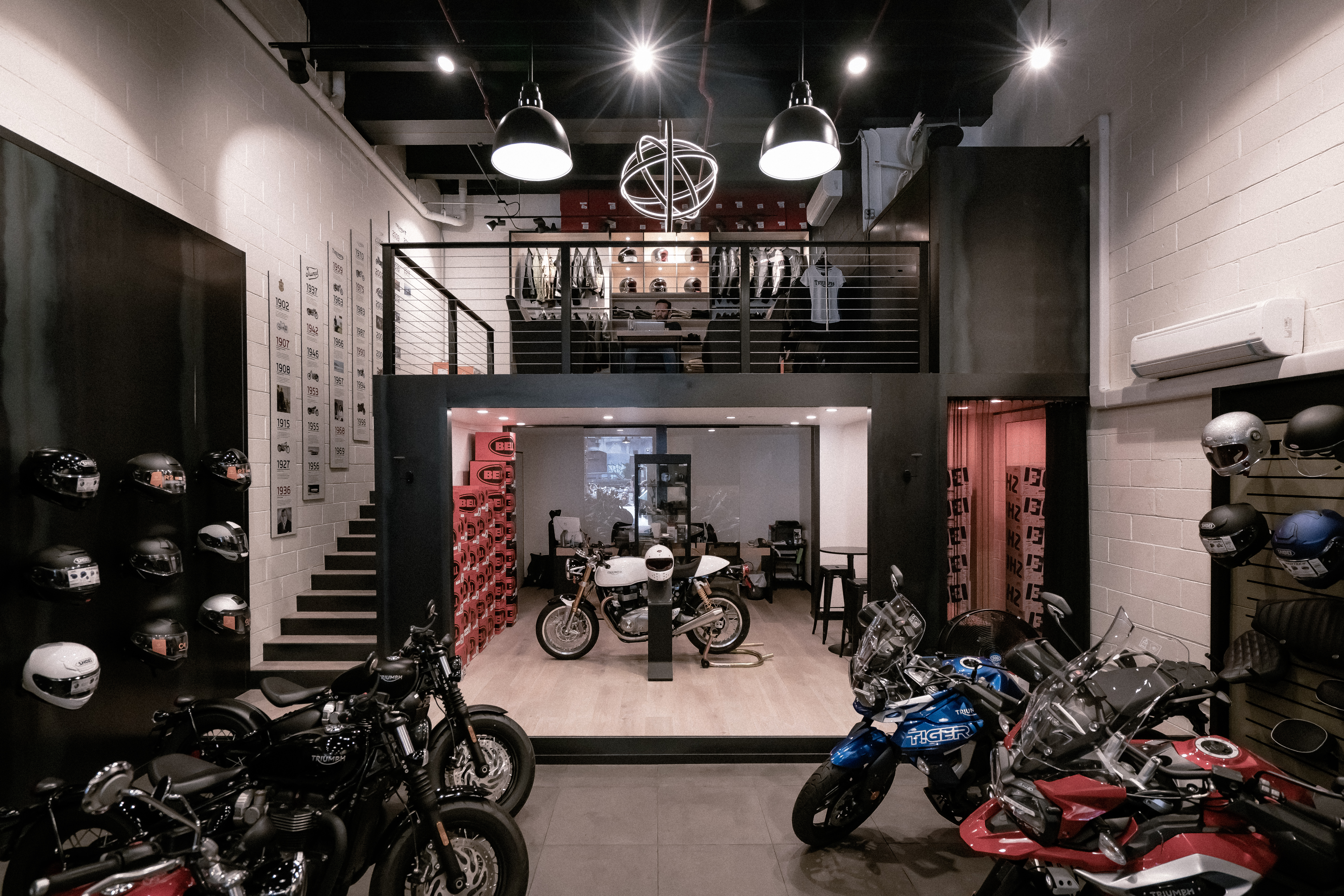 为了将他们对摩托车的专业知识和热情带到布鲁克林,Triumph 求助于 Thread Collective 来翻新其位于威廉斯堡 2,000 平方英尺的陈列室的内部。最终的设计体现了该社区的工业现代美学,同时向凯旋的历史致敬。20 英尺高的玻璃车库门作为入口。在内部,中央垂直电梯是开放式概念商店的焦点,使自行车可以轻松地从修理店转移到陈列室。黑钢镶板墙通向一个用钢包裹的重新利用的集装箱,作为员工的私人办公空间。