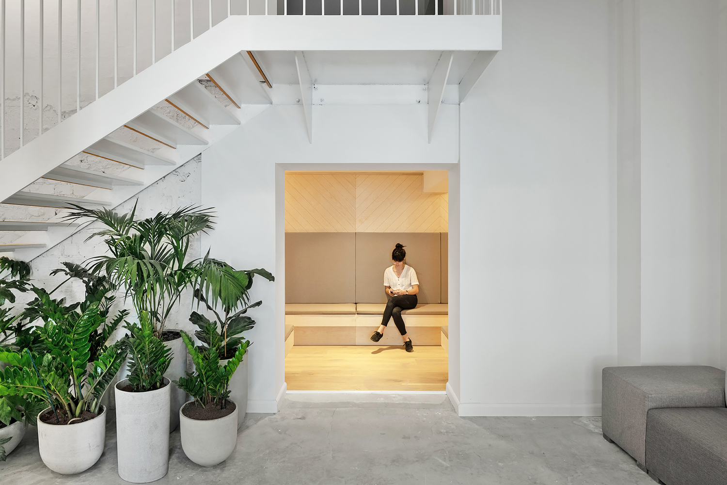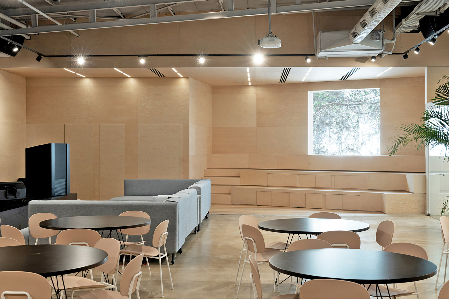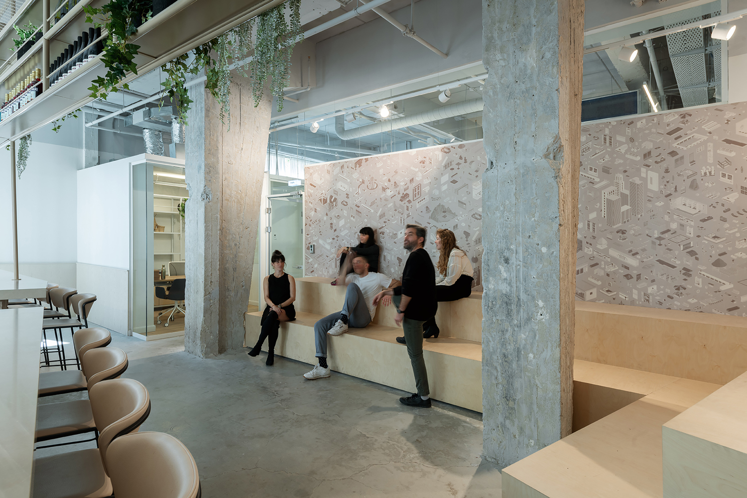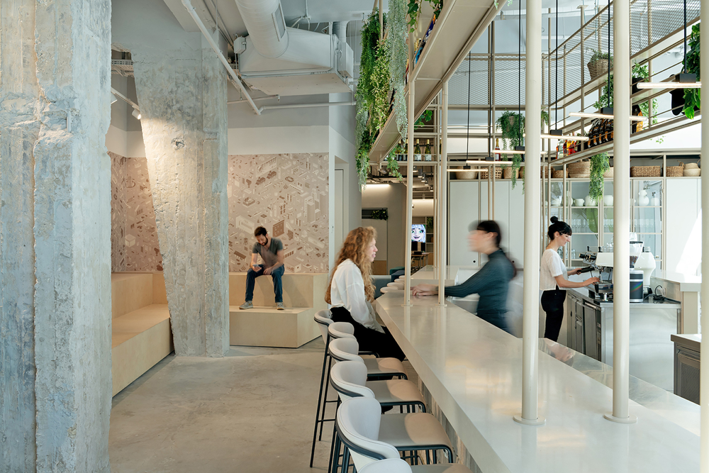 与特拉维夫大多数位于新塔楼内的高科技办公楼不同,该规划要求设计一个现有的工业综合体,由梁、混凝土柱和宽大的窗户构成,窗户通向一个大型内部庭院,老树和攀缘植物是这个建筑群的代名词。该公司专注于游戏和应用程序,力求创造一个健康、宜人、柔和、光线充足、干扰少的空间。